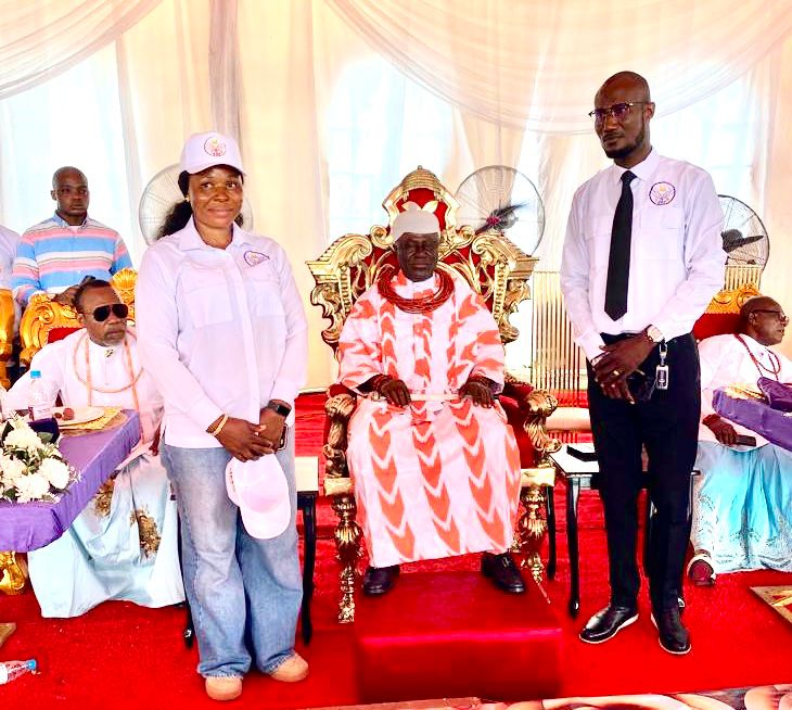 As part of the program, the team paid a brief stopover at the palace of the King of Ogbe-Ijoh Warri Kingdom, who is celebrating his 10th Year Coronation Anniversary. The courtesy visit strengthened community relations and underscored the Foundation’s respect for traditional institutions and materials given to the students and pupils of the kingdom.